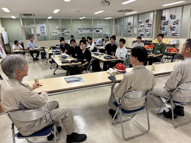 見学後には会社担当者を交えて活発な質疑応答が行われ、鋼管の製造や用途に関する理解を深めることができました。